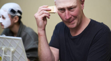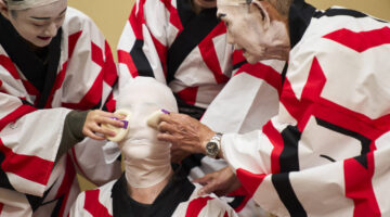 After the show, some actors (popular actors) press their face on a cloth to leave the imprint of makeup on it. This action is called Oshiguma and the imprinted towel is given to their fans as a token of gratitude for their enthusiastic support.