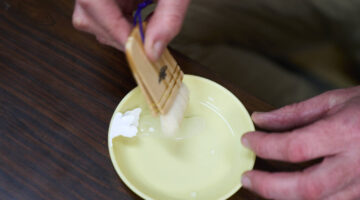- Mix the face powder with water to create a foundation for your makeup. Then, apply the foundation all over your face with a brush. After applying several times, pat your face with a puff to set the makeup.