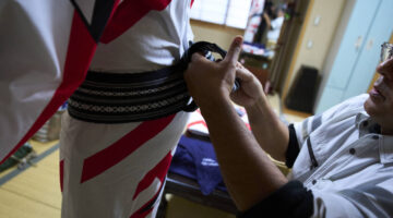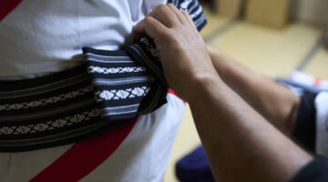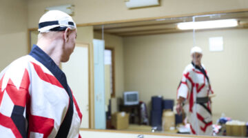 - Let’s wear a white special head gear called Habutae (羽二重).